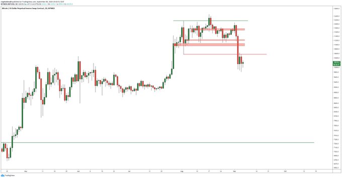 “My thoughts on $BTC: Reclaim 11.1-11.2k and we are back in the previous range. Will look to sell the BTC I bought back there if given. Potentially 10.6k too. Reclaim 11.1-11.2k and back in. Reject target 9.6k and mid 8’s.”